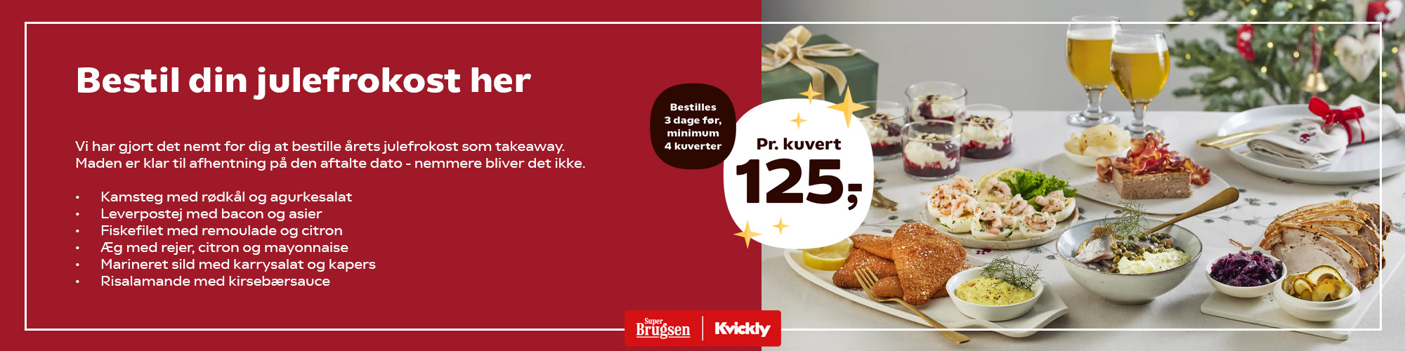 Rugbrød, franskbrød samt rundstykker fra Brødcooperativet kan tilkøbes til 10,- pr. kuvert.